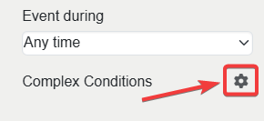 Karmaşık Koşullar ayarlarını yapılandırmaya başlamak için, filtre panelindeki Karmaşık Koşullar seçeneğinin yanındaki Ayarlar simgesine tıklayın veya —